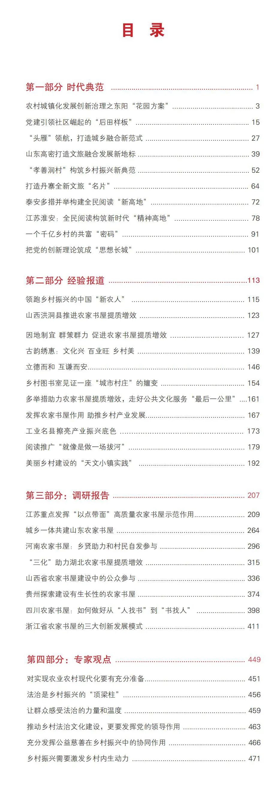 該書圖文并茂,由“時(shí)代典范”“經(jīng)驗(yàn)報(bào)道”“調(diào)研報(bào)告”“專家觀點(diǎn)”四個(gè)部分組成,作品“沾泥土帶露珠”,共計(jì)32萬(wàn)字。透過(guò)該書,讀者能看到各地是如何與時(shí)俱進(jìn)創(chuàng)新發(fā)展農(nóng)家書屋、為鄉(xiāng)村振興提供“智慧屋”“充電樁”的;又是如何因地制宜、多措并舉大力發(fā)展產(chǎn)業(yè)經(jīng)濟(jì)的;還能看到各地如何凝聚農(nóng)民群眾的力量、壯大人才隊(duì)伍,使其在鄉(xiāng)村振興中大顯身手……