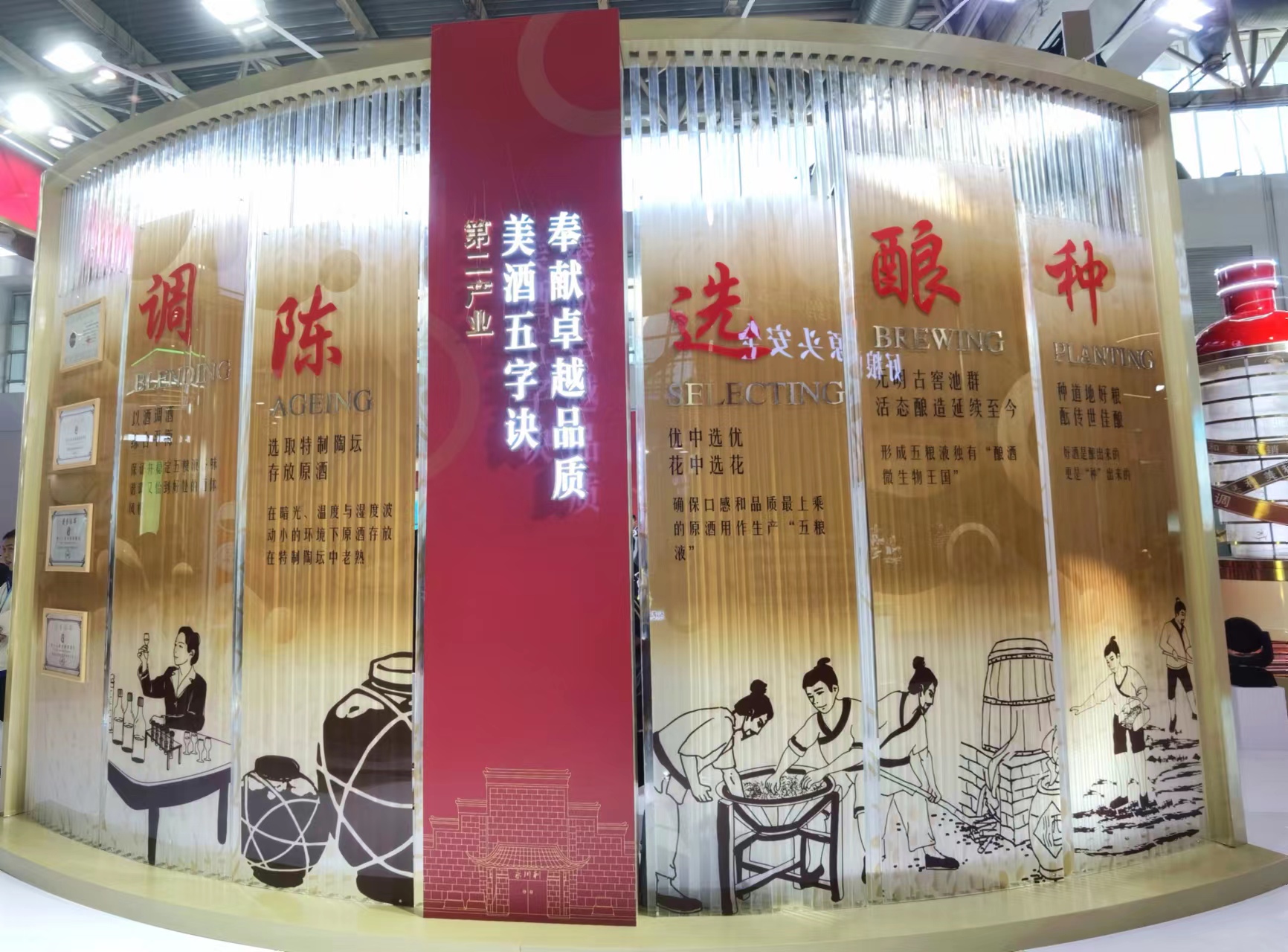 在展廳中心,501五糧液、經(jīng)典五糧液、第八代五糧液、五糧液·紫氣東來等核心產(chǎn)品亮相,精彩呈現(xiàn)五糧液以五糧美酒聯(lián)結(jié)內(nèi)部全產(chǎn)業(yè)鏈,鏈接外部和美世界的和美支撐,打造世界一流企業(yè),共釀美好生活的責(zé)任擔(dān)當(dāng)。五糧液將“和美”理念貫穿整個產(chǎn)業(yè)鏈過程中,以和美種植、和美釀造、和美勾調(diào)、和美營銷、和美文化為生產(chǎn)動力,以“包裝、物流”為強(qiáng)大支撐,每一個環(huán)節(jié)都可管控、可追溯,致力于為全球消費(fèi)者提供安全、安心服務(wù),真正實(shí)現(xiàn)用美酒鏈接“和美世界”。
