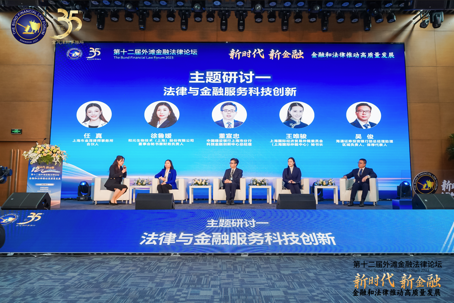 “法律與金融服務(wù)科技創(chuàng)新”主題研討環(huán)節(jié),由上海市金茂律師事務(wù)所合伙人任真律師主持,來自海通證券股份有限公司上海投資銀行部總經(jīng)理助理吳俊先生、上海國際經(jīng)濟(jì)貿(mào)易仲裁委員會(huì)(上海國際仲裁中心)秘書長(zhǎng)王唯駿女士、中國建設(shè)銀行上海市分行科技金融創(chuàng)新中心總經(jīng)理董宣忠先生、和元生物技術(shù)(上海)股份有限公司董事會(huì)秘書兼財(cái)務(wù)負(fù)責(zé)人徐魯媛女士共同參與研討。