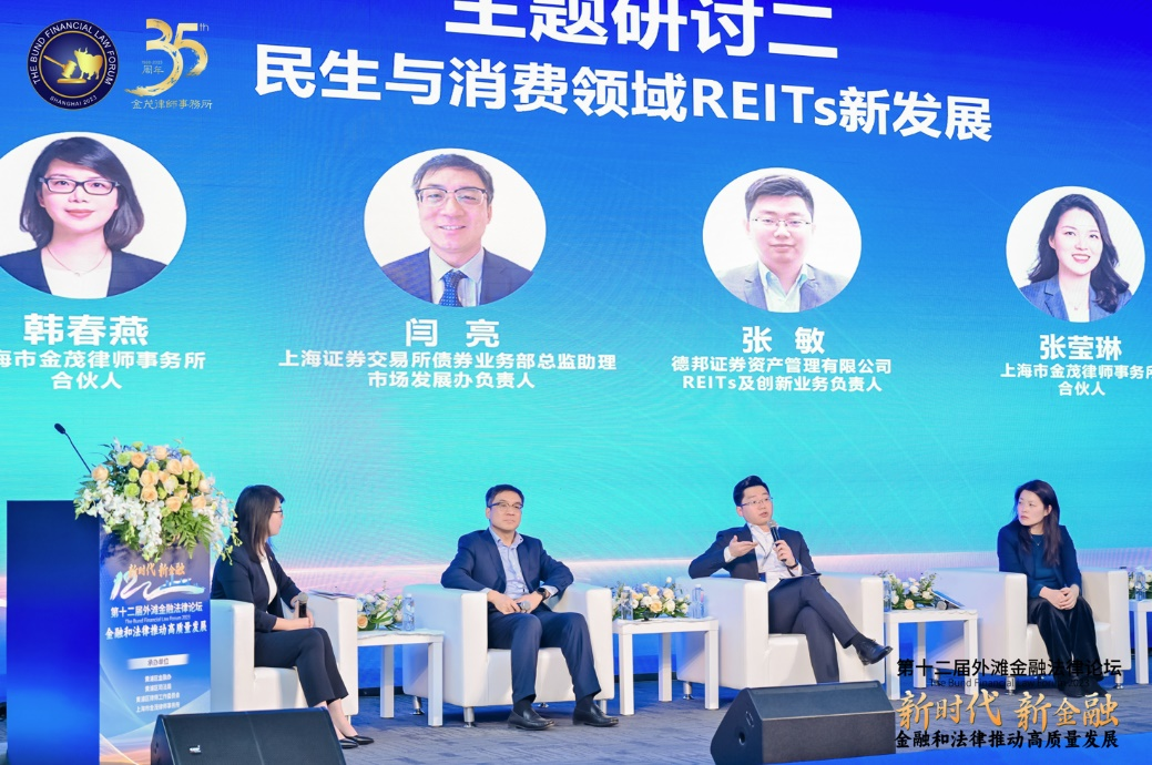 “民生與消費(fèi)領(lǐng)域REITs新發(fā)展”主題研討環(huán)節(jié),由上海市金茂律師事務(wù)所合伙人韓春燕律師主持,來自上海證券交易所債券業(yè)務(wù)部總監(jiān)助理、市場(chǎng)發(fā)展辦負(fù)責(zé)人閆亮先生、德邦證券資產(chǎn)管理有限公司REITs及創(chuàng)新業(yè)務(wù)負(fù)責(zé)人先生、上海市金茂律師事務(wù)所合伙人張瑩琳律師共同參與研討。