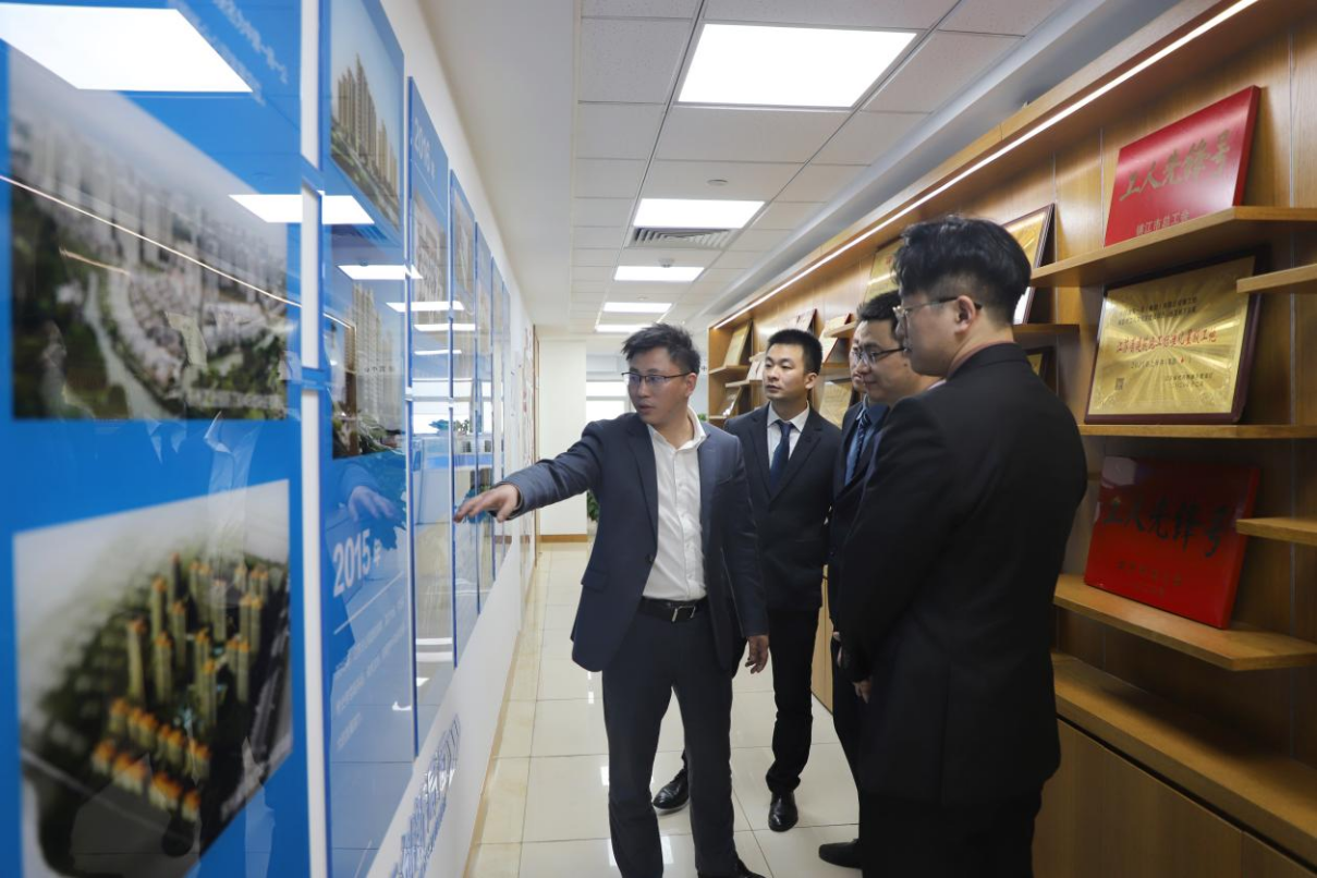 曹小剛邀請律所同志參觀江蘇分公司黨建文化墻,深入了解企業(yè)發(fā)展歷程及文化使命。