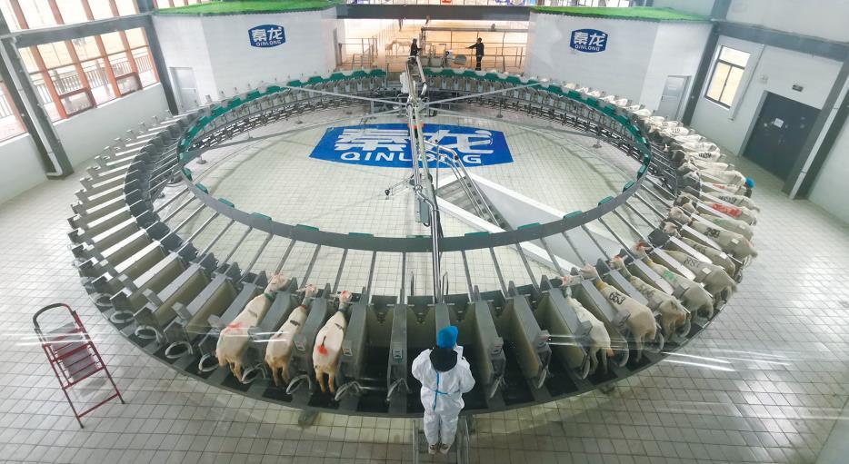 當(dāng)日9時(shí),到了給奶山羊擠奶時(shí)間,羊群通過(guò)單向趕羊通道有序進(jìn)入百位轉(zhuǎn)盤式智能擠奶設(shè)備完成每日的產(chǎn)奶任務(wù)。“我們使用的百位轉(zhuǎn)盤式智能擠奶設(shè)備,實(shí)現(xiàn)了每100只羊從清洗到完成擠奶僅需10分鐘,擠奶效率大幅提升?!庇谇邎@說(shuō)。