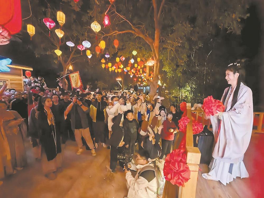 為讓游客有更好的文化體驗,今年元宵節(jié),杏陳鎮(zhèn)聯(lián)合磁窯村策劃了“浪漫元宵·緣定磁窯”沉浸式漢服游園會。當(dāng)晚,身著各式漢服的演員們穿梭在各個景點,用“舞蹈+情景劇”的方式為游客獻(xiàn)上民族舞、古箏演奏、拋繡球等精彩表演。