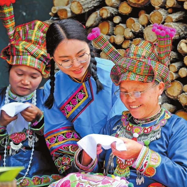 走進(jìn)云南省文山壯族苗族自治州廣南縣者兔鄉(xiāng),綠美鄉(xiāng)村間,婦女們背著娃、繡著花的幸福畫面隨處可見。她們用一針一線繡出美好生活,將蘊(yùn)藏著古老文化的壯繡巧妙融入時尚元素,將“指尖優(yōu)勢”轉(zhuǎn)化為“增收優(yōu)勢”。