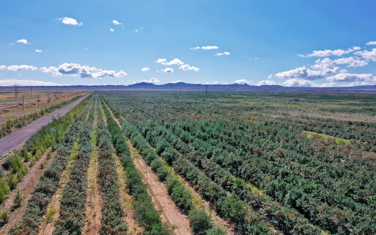 經(jīng)過十余年深耕,匯源在阿勒泰地區(qū)布爾津縣所種植的沙棘林規(guī)模已近10萬畝,大片的戈壁荒灘搖身一變成了一眼望不到邊際的綠洲,將沙塵暴對沿途地區(qū)生態(tài)環(huán)境造成的不利影響降至最低。