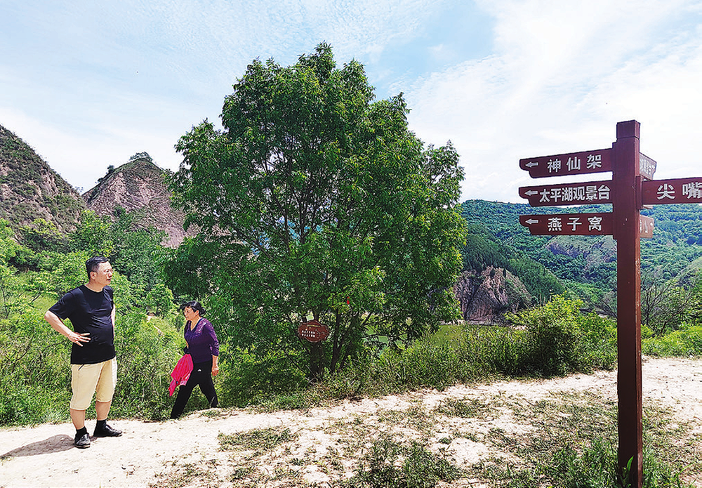 “村里真熱鬧,咋這么多人?”“咱村村民不多,就300多人,其余都是城里來的人,來這兒看燕子窩、太平湖、尖嘴山、夫妻崖的。”