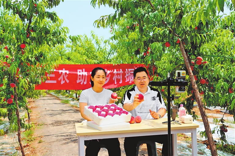 每年的6至7月份,新鄉(xiāng)郵政直播人員都會走進衛(wèi)輝的萬畝桃園,通過直播+郵寄的方式,依托三級物流體系幫助桃農(nóng)把鮮桃郵寄全國各地。