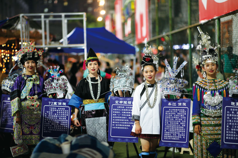 “村超”現(xiàn)場,當?shù)厣贁?shù)民族身著盛裝,向外來游客展示本民族服飾文化 張暉 攝