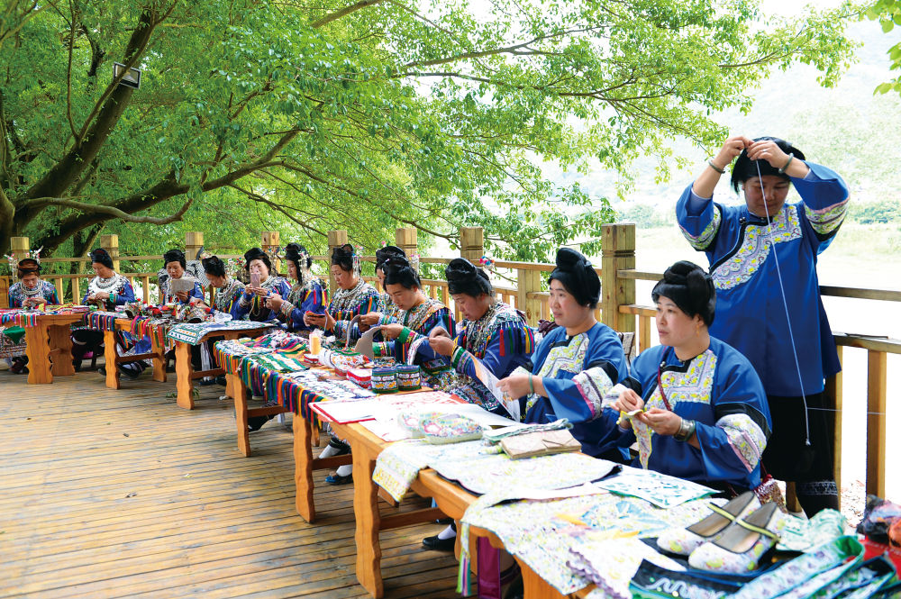 “回到榕江后,我?guī)Я?位徒弟,憑借這項手藝,她們有了可觀的收入?!笔瘣墼普f,有空的時候,自己還利用手機進行教學直播,幫助更多鄉(xiāng)親掌握一技之長,助力他們自主創(chuàng)業(yè)就業(yè)。