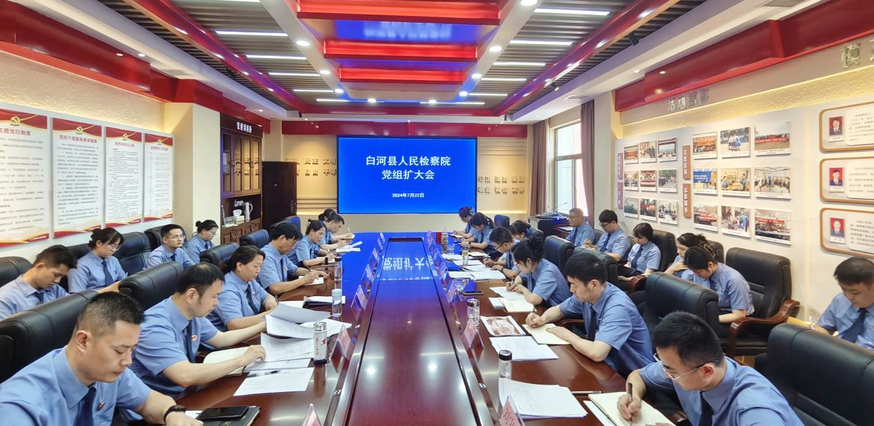 7月22日,陜西省安康市白河縣人民檢察院召開黨組擴(kuò)大會(huì),傳達(dá)學(xué)習(xí)黨的二十屆三中全會(huì)精神,研究部署當(dāng)前重點(diǎn)工作,會(huì)議由該院黨組書記、檢察長馬繼軍主持,全體干警及書記員參加。