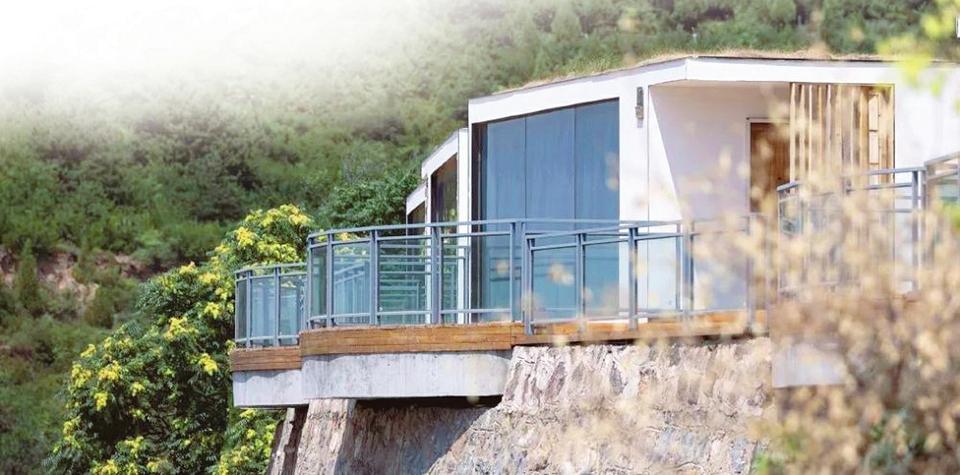 森棲小鎮(zhèn)“懸”于山崖邊的簡(jiǎn)約方形地球倉(cāng)