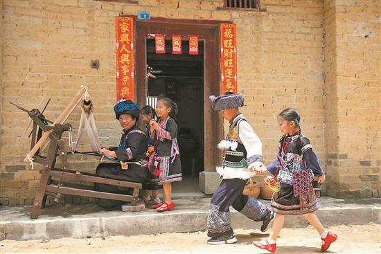 走進(jìn)連山壯族瑤族自治縣福堂鎮(zhèn)太平村委會金龜村,近年打造的鄉(xiāng)村文化空間——壯瑤傳統(tǒng)風(fēng)貌園一下子就驚艷了游客。在風(fēng)貌園的錦繡非遺館里,游客可以欣賞到上百件明清時(shí)期的珍貴壯錦藏品;在非遺工坊和研學(xué)基地里,游客可以參與研學(xué),沉浸式體驗(yàn)壯錦的編織與文創(chuàng);在染料種植科普園里,游客還可以與自然親密接觸,增長見識……