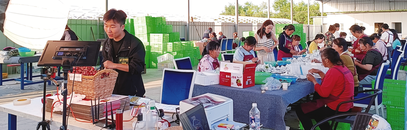 網(wǎng)絡主播在金臺區(qū)櫻桃分揀打包現(xiàn)場進行直播帶貨