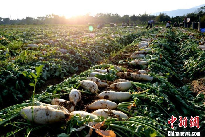 電白區(qū)沙瑯鎮(zhèn)譚儒村剛收獲的新鮮蘿卜(譚儒村委會(huì)供圖)