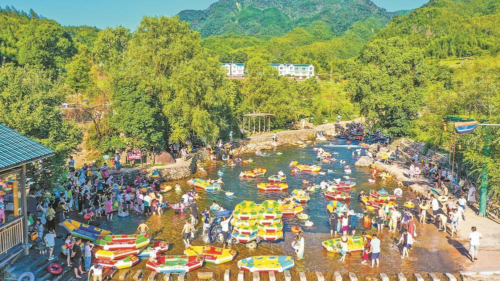 高峰村的漂流項(xiàng)目吸引眾多游客前來(lái)體驗(yàn)