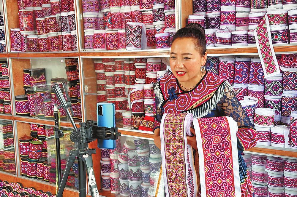 馬關(guān)縣民族服飾產(chǎn)業(yè)園電商帶貨 記者 張文峰 攝