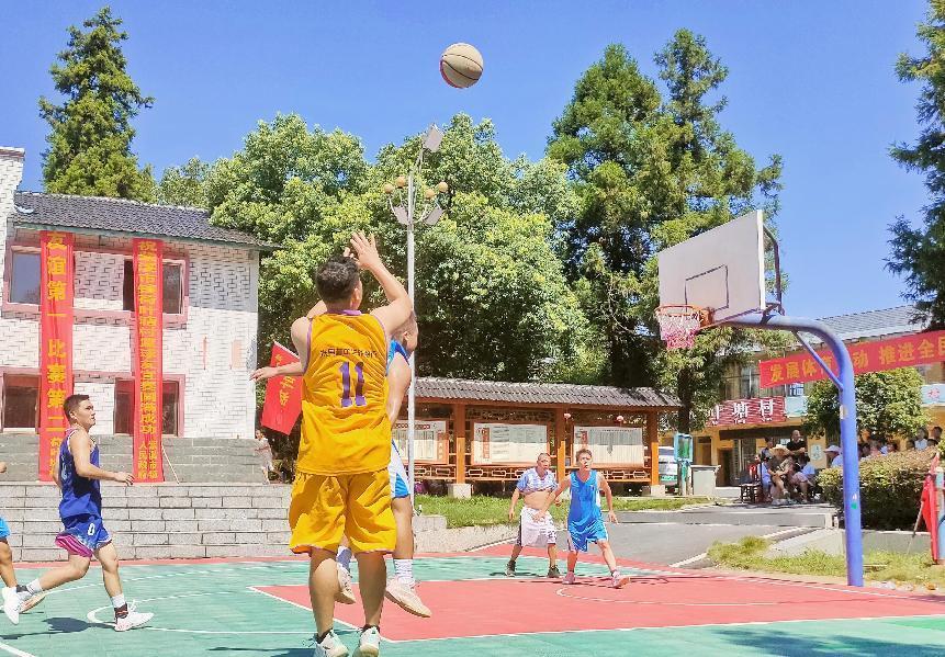 紫溪市鎮(zhèn)樂(lè)園村隊(duì)隊(duì)員在搶投3分球 謝助民 攝