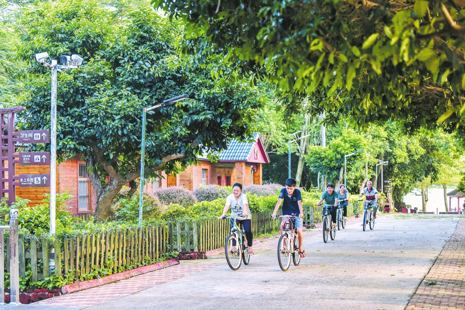 8月24日,在位于瓊山區(qū)紅旗鎮(zhèn)蘇尋三村的泮邊休閑農(nóng)莊內(nèi),游客正在騎行賞景 記者 蘇弼坤 攝