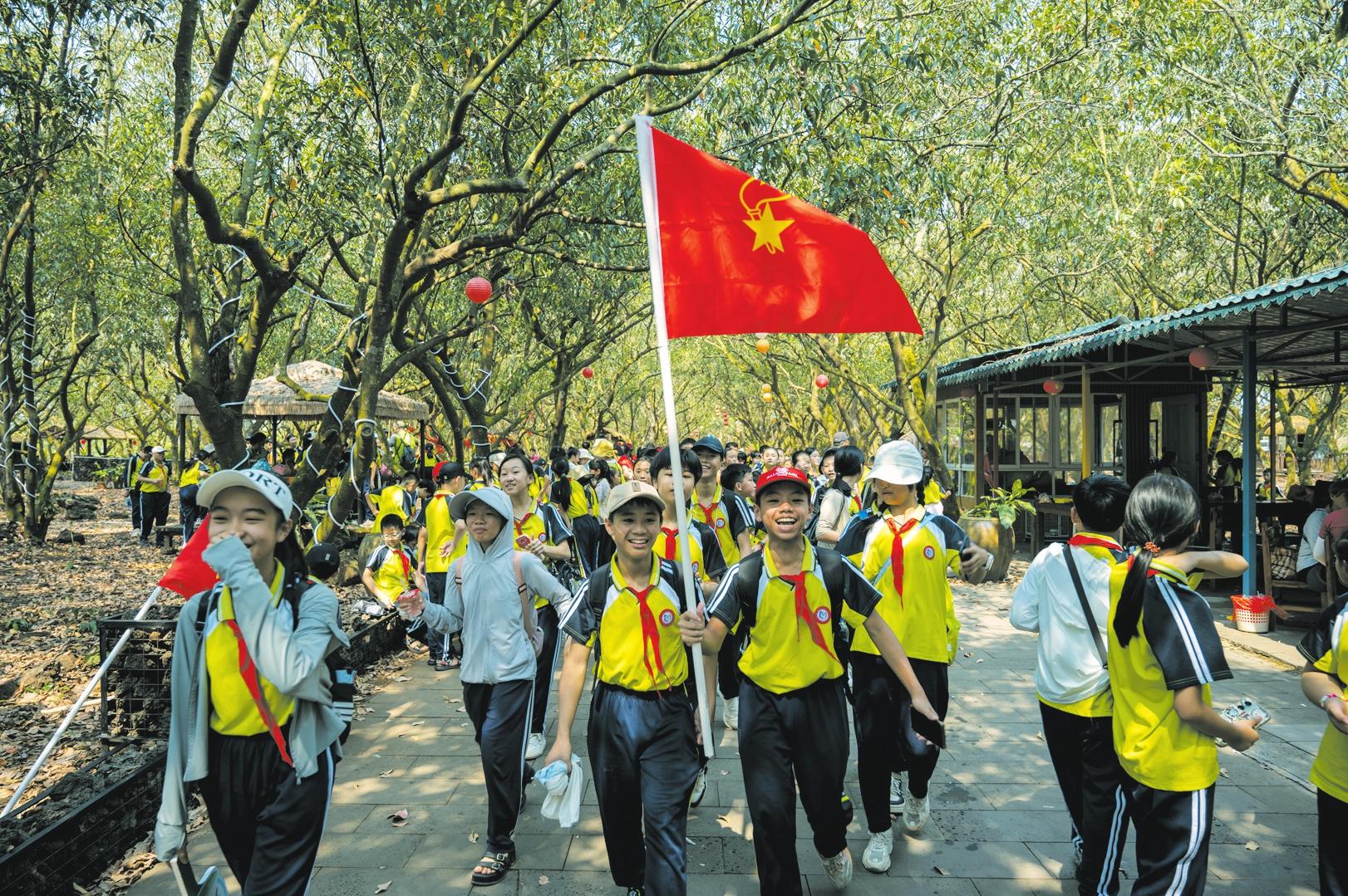 在位于秀英區(qū)永興鎮(zhèn)的馮塘綠園內(nèi),學(xué)生們正在觀光研學(xué) 記者 石中華 攝