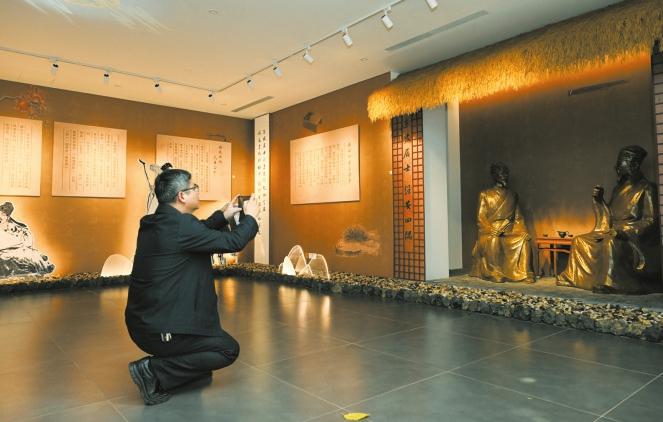 在美蘭區(qū)演豐鎮(zhèn)瑤城村,“東坡海南行跡館”等特色展區(qū)吸引游客前來拍照打卡 記者 楊鶴 攝
