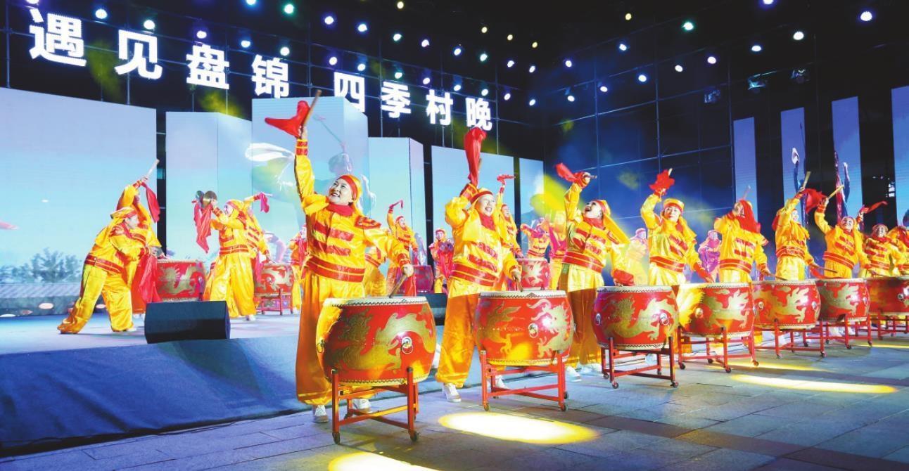 “大地歡歌·盤錦市秋季村晚”開場(chǎng)的大鼓鏗鏘有力,承載著鄉(xiāng)音、傳遞著鄉(xiāng)樂(受訪者供圖)