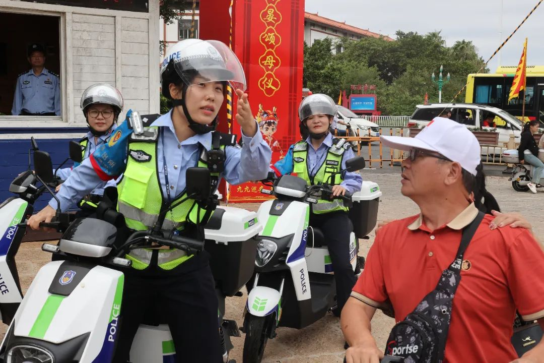 在國(guó)慶期間,女子巡邏隊(duì)員升級(jí)裝備,駕駛警用電動(dòng)車,以更加飽滿的姿態(tài)全新亮相。10月5日,騎行隊(duì)員在祖廟山門廣場(chǎng)前巡邏時(shí)遇到一對(duì)腿腳不便的游客,向隊(duì)員求助“前往祖廟山上,是否有無障礙通道?”面對(duì)特殊請(qǐng)求,騎行隊(duì)員在詢問了游客的具體需求和身體狀況后,決定使用巡邏電動(dòng)車將他們送往祖廟圣旨門廣場(chǎng),并充當(dāng)起臨時(shí)導(dǎo)游,為游客介紹了祖廟的歷史和文化。巡邏結(jié)束后,服務(wù)還在繼續(xù),隊(duì)員還主動(dòng)提出將這對(duì)游客送往其他景點(diǎn)游玩,讓他們能夠更全面地了解湄洲的文化和風(fēng)土人情。