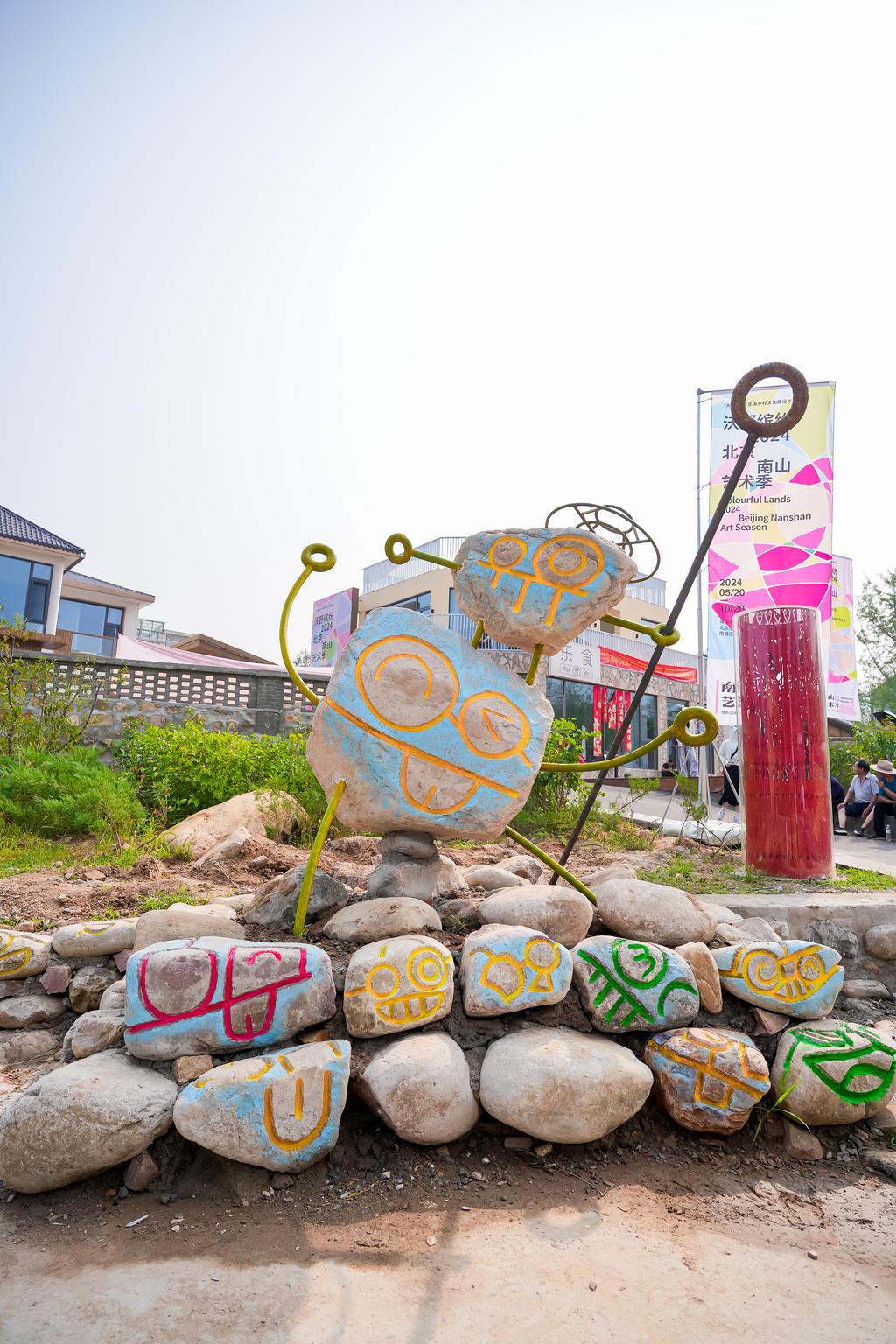 如今,南山村村口灰撲撲的石頭圍墻變成了一面豐收墻,大家把石頭涂畫成白菜、柿子、大桃等果蔬的樣子;清華美院在胡同安裝了交互感應(yīng)裝置,夜晚有人走過,就會投射出一只奔跑的夜光兔子;北京林業(yè)大學用玻璃飲料瓶復(fù)現(xiàn)了村里曾經(jīng)出土的文物石馬,名為《馬放南山》……環(huán)境變好了,加上南山藝術(shù)季的帶動效應(yīng),村民的柿子、山里紅、核桃也都賣出去了,鄉(xiāng)村建設(shè)還讓村里的石匠、瓦工有了在家門口掙錢的機會。