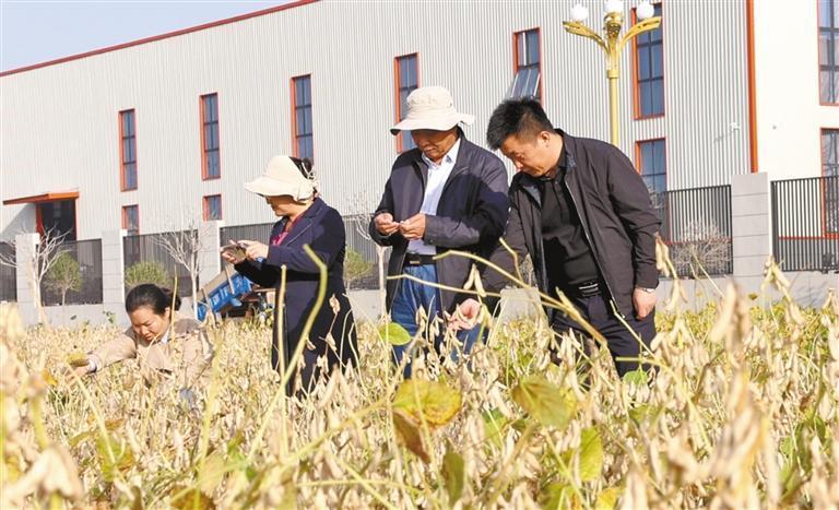 專家在岐山縣對“寶豆10號”百畝大豆種植示范田進(jìn)行現(xiàn)場實(shí)收測產(chǎn)(資料照片)受訪者供圖