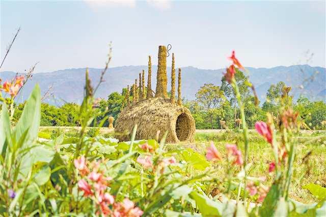 佇立窗邊,極目遠(yuǎn)眺,百畝稻田盡收眼底,磚墻青瓦的特色農(nóng)家小院散布在青山綠水間,藝術(shù)博物館、美術(shù)館、小劇場(chǎng)、咖啡館、稻草制作的人偶、房屋外墻上的貓咪雕塑、極具創(chuàng)意的手工作品……藝術(shù)氣息撲面而來(lái)。
