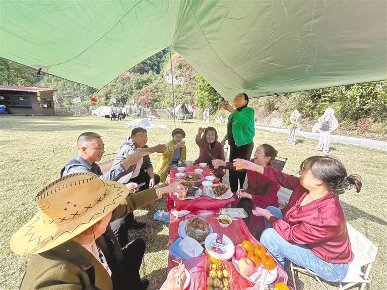“我們的戶外特色帳篷‘星象’,一到節(jié)假日就得早早預(yù)訂。”神隱谷露營基地負(fù)責(zé)人胡桃根說,今年前10月,露營基地共接待游客10萬人次,帶動周邊20多名村民就業(yè)增收,也讓村里的特色農(nóng)產(chǎn)品賣上了好價錢。