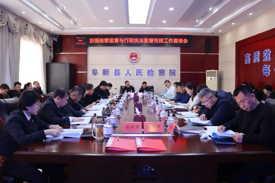 為全面落實(shí)《中共中央關(guān)于加強(qiáng)新時(shí)代檢察機(jī)關(guān)法律監(jiān)督工作的實(shí)施意見》和最高檢《關(guān)于推進(jìn)行刑雙向銜接和行政違法行為監(jiān)督構(gòu)建檢察監(jiān)督與行政執(zhí)法銜接制度的意見》,有效推動(dòng)檢察監(jiān)督與行政執(zhí)法監(jiān)督的銜接配合,助推法治政府建設(shè),11月22日,遼寧省阜新縣人民檢察院與阜新縣司法局聯(lián)合召開了加強(qiáng)檢察監(jiān)督與行政執(zhí)法監(jiān)督銜接工作座談會(huì)??h委常委、副縣長(zhǎng)張文遠(yuǎn),縣委常委、政法委書記王立靖參加會(huì)議并講話??h公安局、縣司法局、縣工業(yè)和信息化局、縣人力資源和社會(huì)保障局、縣住房和城鄉(xiāng)建設(shè)局、縣水利局、縣應(yīng)急管理局、縣林業(yè)和草原局等12家行政單位參加了座談會(huì)。市人民檢察院、縣紀(jì)委監(jiān)委、縣人民法院派員參加了會(huì)議。