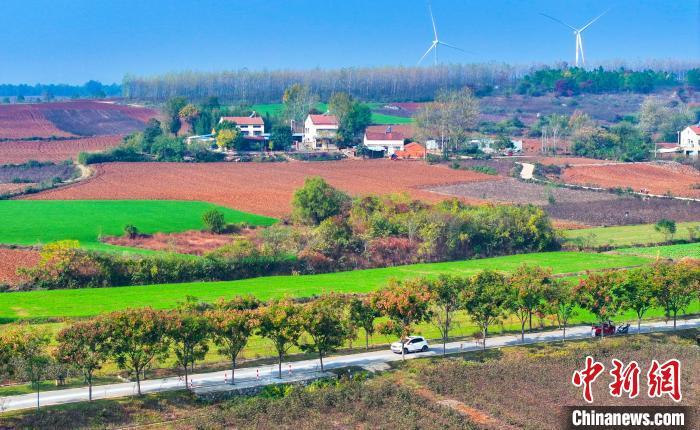 初冬時(shí)節(jié),驅(qū)車駛?cè)牒笔∫顺鞘薪鹆_線,阡陌通途,不少市民游客沿公路騎行打卡,一路歡歌而上。