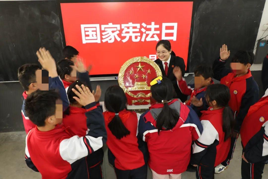 “國徽是什么顏色的?中間的五角星代表著什么……”“法官姐姐”向同學(xué)們詳細(xì)講解國徽的圖案、顏色、尺寸、制作、使用等規(guī)定,幫助他們認(rèn)識(shí)國徽、了解國徽。隨后,“法官姐姐”進(jìn)行現(xiàn)場提問,同學(xué)們踴躍舉手回答,現(xiàn)場氣氛歡快熱烈。