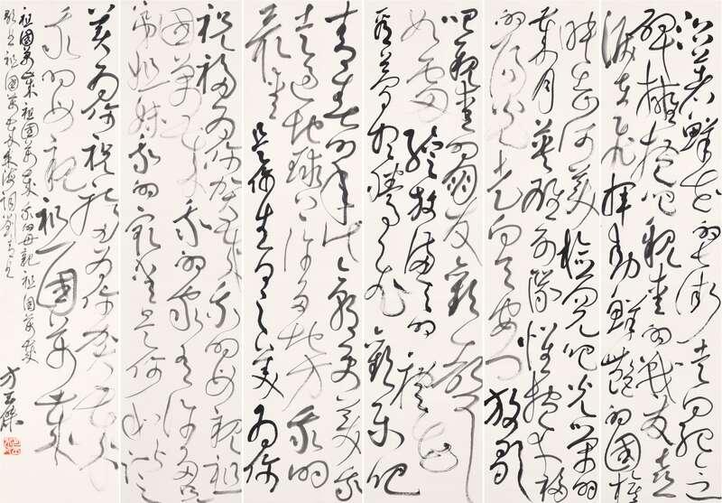 展覽作品《祖國萬歲》朱海 詞 劉青 曲 大草灰宣六條屏-230cm×54cm×6(主辦方供圖)