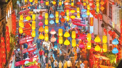 新春佳節(jié)臨近,海南省??谑胁勐纺曦浺粭l街張燈結彩,吸引了眾多市民游客。張茂 攝