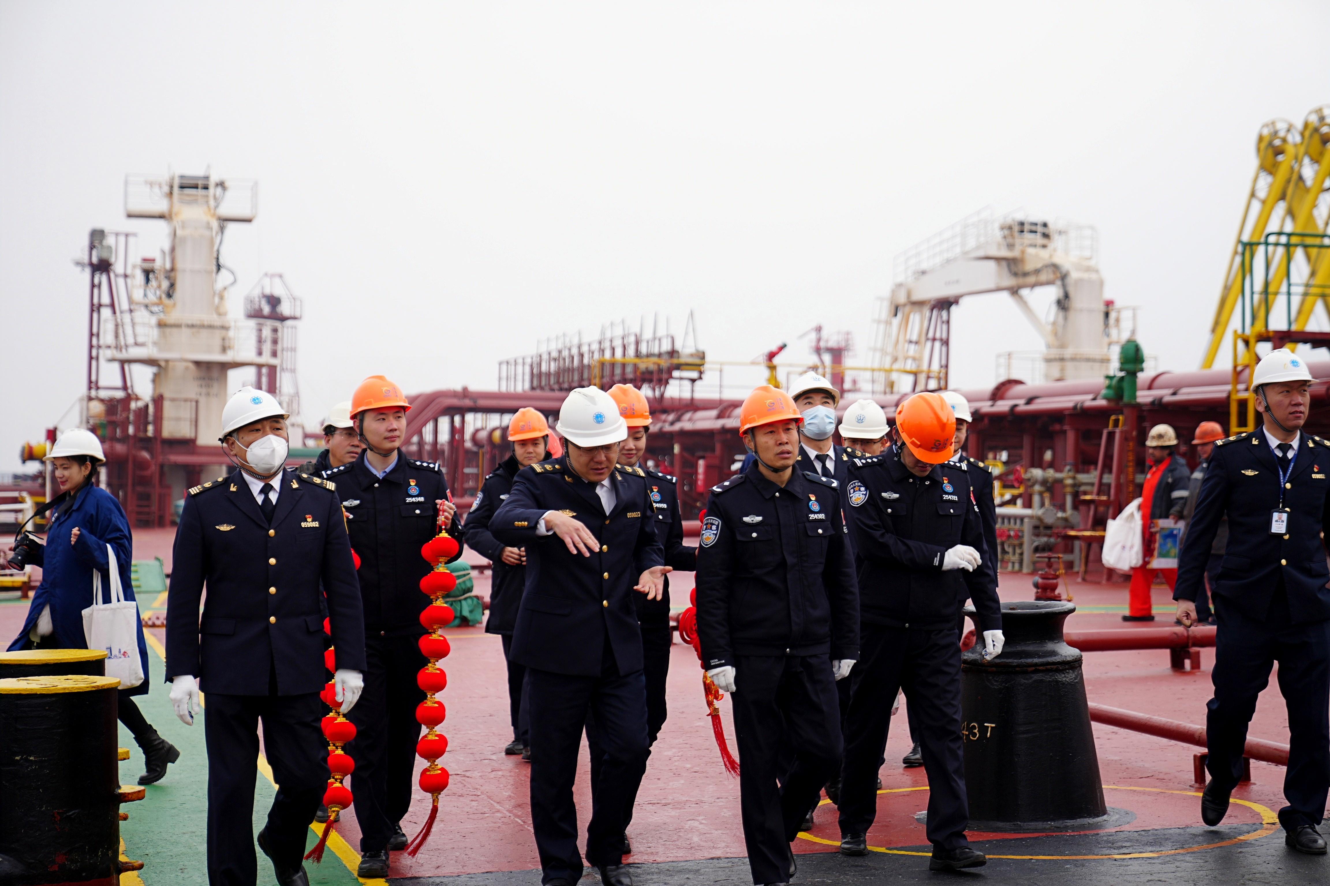 1月22日上午,筆者在董家口港區(qū)油港碼頭看到,圣瑪力諾籍油輪“海天”輪停靠在泊位上,原油正源源不斷地通過(guò)管道從船上輸送到地面儲(chǔ)油罐。據(jù)了解,該輪載有9.5萬(wàn)噸原油,于半個(gè)多月前從馬來(lái)西亞駛往山東。1月21日中午,該輪靠泊董家口碼頭并開(kāi)始卸油,計(jì)劃于1月23日完貨離港。