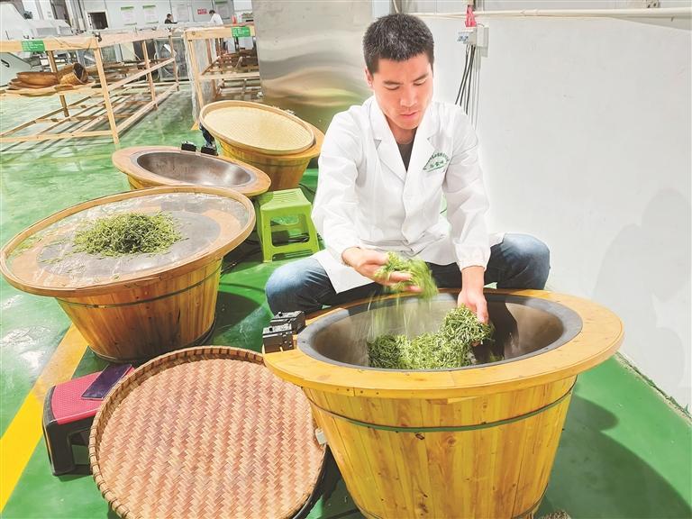現(xiàn)在,許大全忙的是茶園的規(guī)范化管理、標準化制茶以及銷售渠道的搭建。目前,標準化茶葉加工廠房已建成投產(chǎn),3條生產(chǎn)線為茶園生產(chǎn)加工提供了保障。