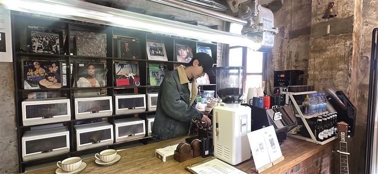 2月6日,漁灣村“鹿柴咖啡”經營者周智天在制作咖啡
