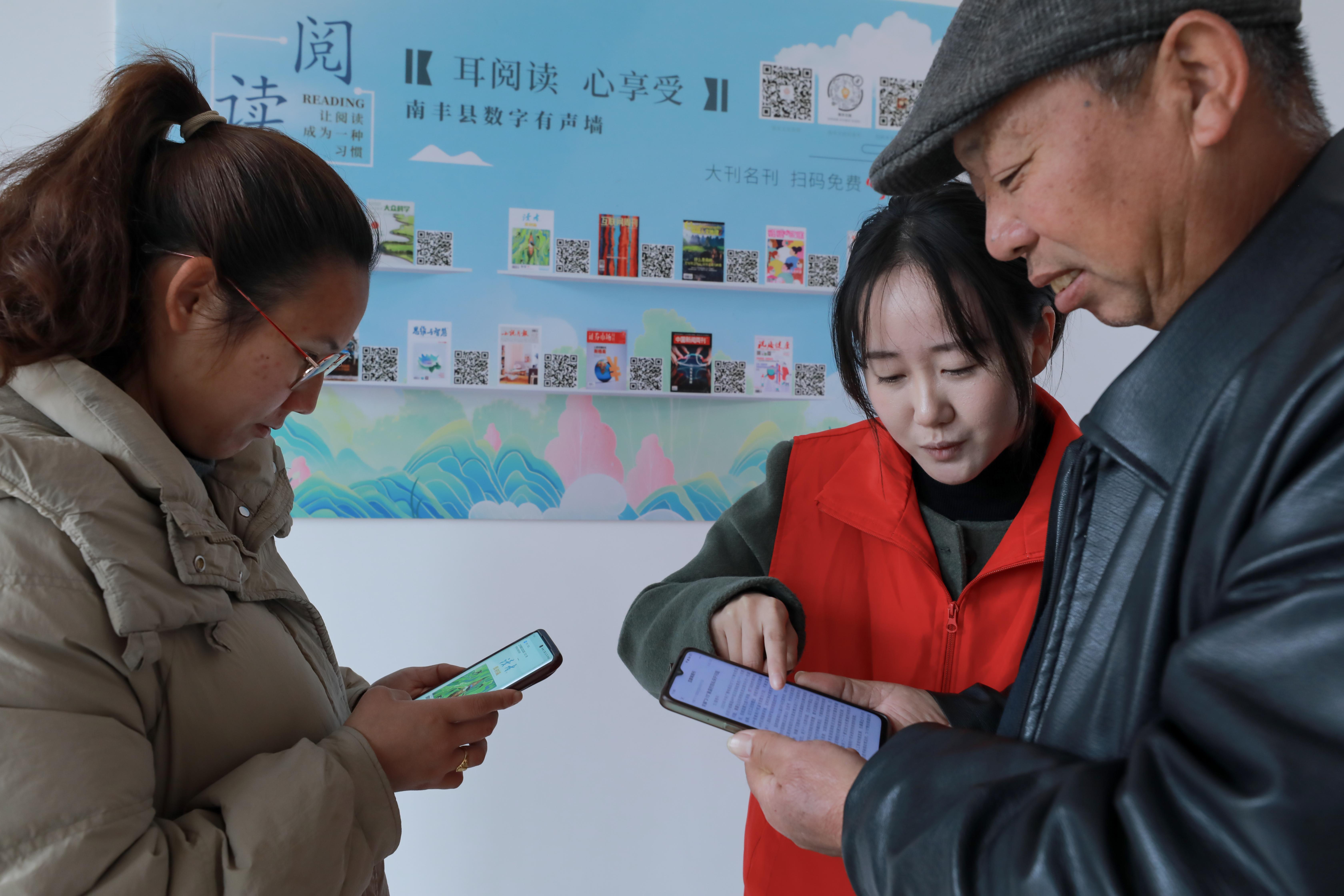 志愿者在農(nóng)家書屋指導村民使用數(shù)字閱讀軟件