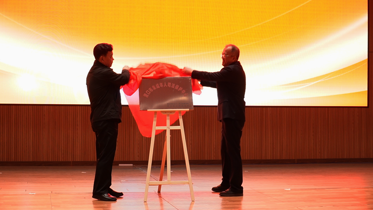 市人民檢察院黨組副書(shū)記、分管日常工作的副檢察長(zhǎng)高兵與市關(guān)工委主任王靜春共同為營(yíng)口市未成年人司法保護(hù)中心揭牌。