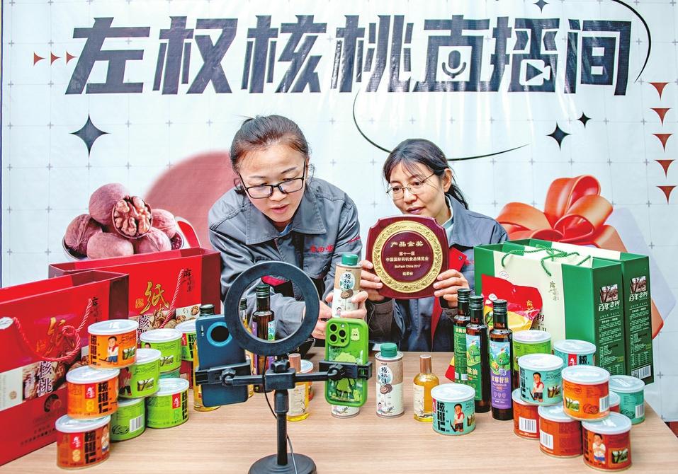 “要想心情好,多往左權(quán)跑,左權(quán)不光是陪伴你春夏秋冬的旅游勝地,也可以是你置辦山鄉(xiāng)好物的‘優(yōu)選庫’?!彪娚讨鞑ミ_(dá)人楊麗娜正對(duì)著鏡頭熱情介紹,從秀美鄉(xiāng)村到古法工藝再到美妙口感,傾情推薦左權(quán)綿核桃、太行小米、手工釀醋等“匠心農(nóng)品”,直播間熱度持續(xù)攀升。