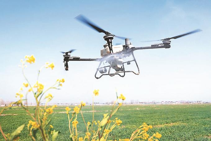 “前幾天有雨水潤(rùn)土,肥撒下去就能化開。”接受采訪時(shí),江蘇順達(dá)農(nóng)業(yè)科技有限公司總經(jīng)理袁菲正在建湖縣鐘莊街道的麥田里操作無人機(jī)施肥。一陣嗡嗡聲過后,細(xì)密的尿素撒在麥苗葉片上。她介紹,人工給1畝地施肥得花1個(gè)小時(shí),而無人機(jī)只需30秒,“我專門考了無人機(jī)駕駛證,公司還有4個(gè)農(nóng)機(jī)手。”