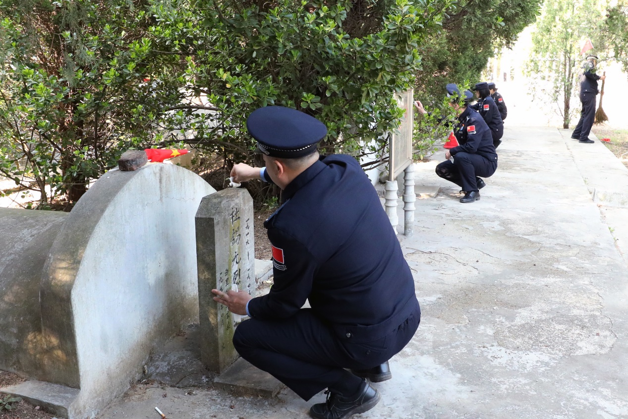 上午9時,參與活動的民警職工整齊列隊于烈士紀(jì)念碑前,對陵園進(jìn)行清理,擦拭墓碑、清掃落葉,以整潔的環(huán)境表達(dá)對英烈的哀思與敬意。