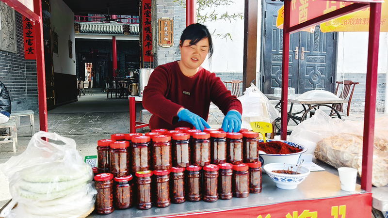 “現(xiàn)在真是大變樣!”鄭翠擦著餐桌感慨道,“我一個(gè)普通農(nóng)民,本是給孩子做的辣醬,竟然得到這么多人的認(rèn)可,這讓我非常開(kāi)心?!?023年,村上免費(fèi)組織村民學(xué)習(xí)抖音短視頻拍攝,岳綿綿親自幫助她。鏡頭里既有辣子鍋盔的制作過(guò)程,也有青訓(xùn)班舊址的紅色故事。如今這家不足200平方米的農(nóng)家樂(lè),自從“觸網(wǎng)”后,本著薄利多銷(xiāo)的原則,依靠品質(zhì)和服務(wù),游客翻了一番,自制辣醬年銷(xiāo)售額常常供不應(yīng)求。