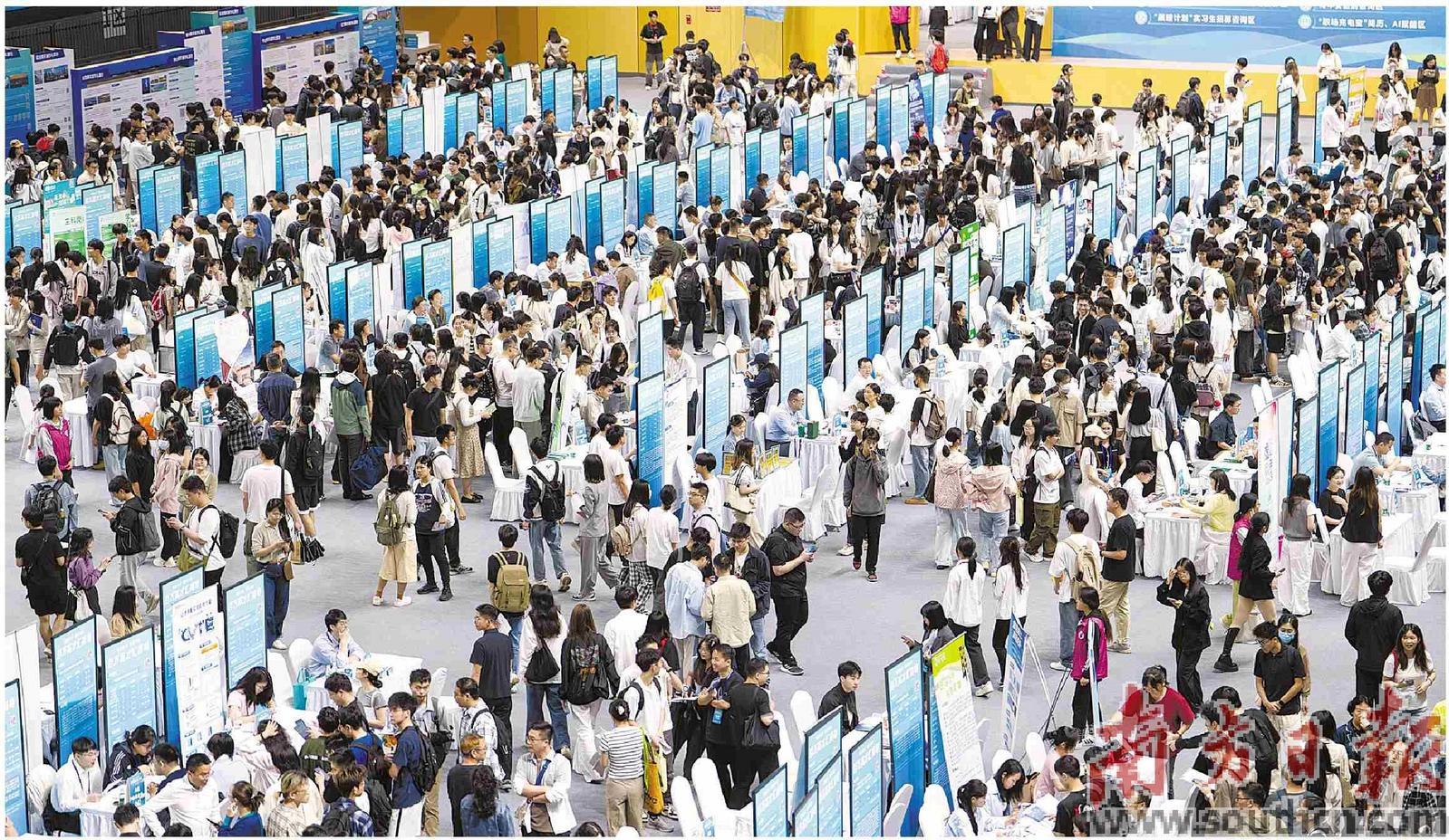 招聘會(huì)現(xiàn)場(chǎng),粵東粵西粵北專區(qū)的攤位前人頭攢動(dòng)。