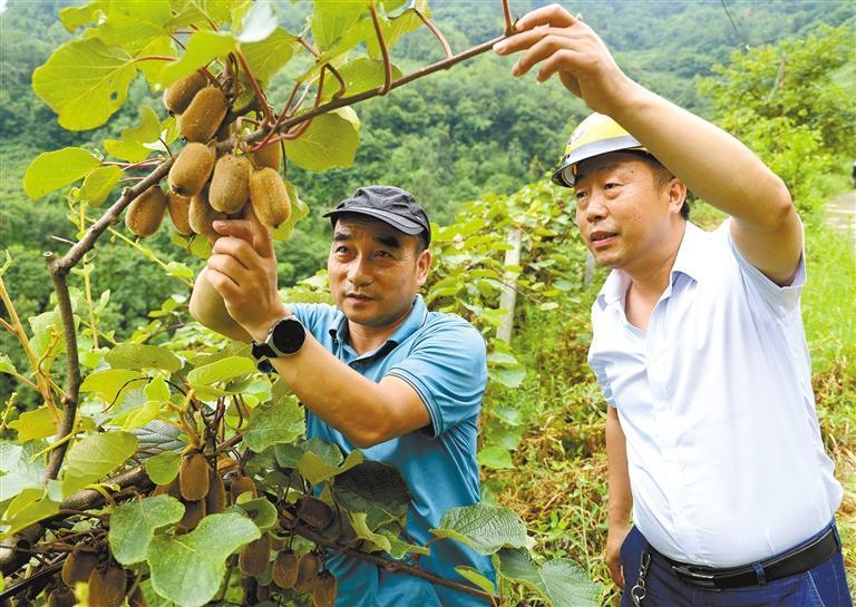 嵐皋縣高級農藝師謝利華(左)在指導村民進行獼猴桃管護(資料照片)。受訪者供圖