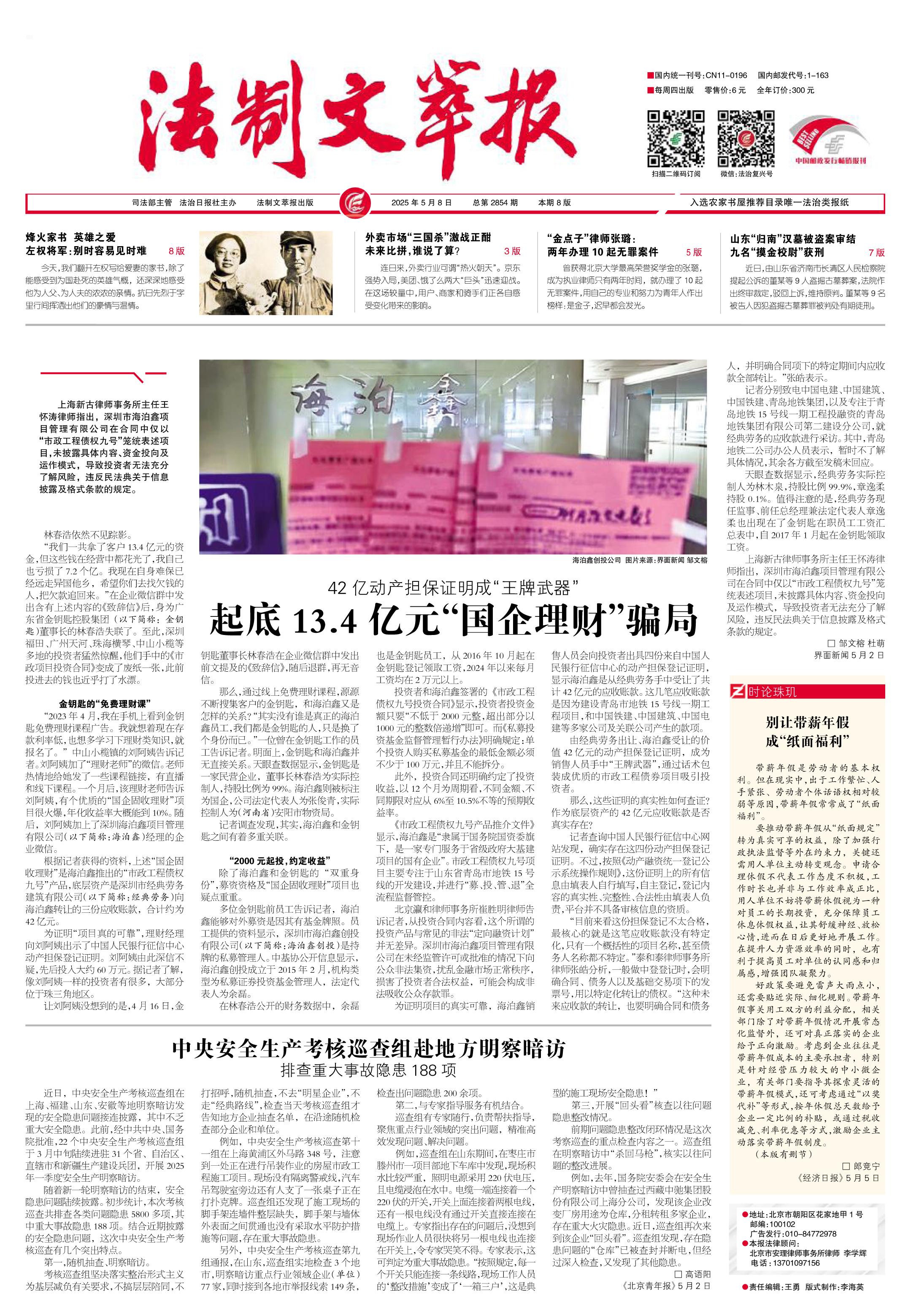 2025年5月8日《法制文萃報(bào)》總第2854期1版