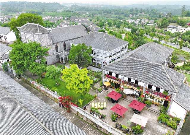 5月7日,九龍坡區(qū)銅罐驛鎮(zhèn)英雄灣村,修繕保護(hù)后的文物古跡里開設(shè)起了咖啡店。記者 張錦輝 攝