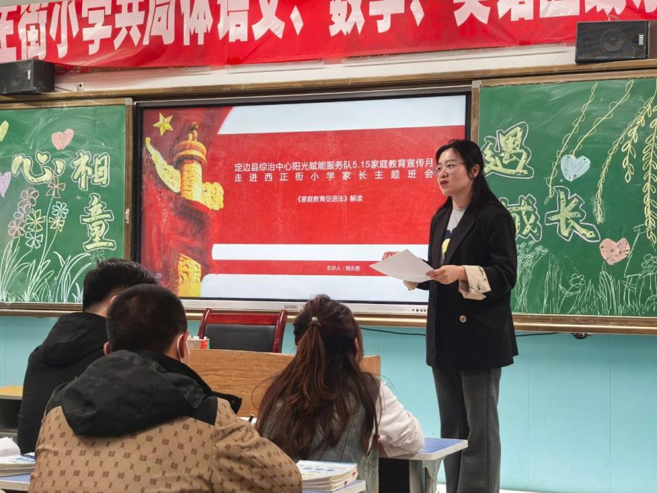 為深化未成年人心理健康教育,健全家庭、學(xué)校、社會(huì)協(xié)同育人體系,近日,陜西省榆林市定邊縣綜治中心陽光賦能服務(wù)隊(duì)聯(lián)合定邊縣人民檢察院未成年人檢察部,走進(jìn)西正街小學(xué)開展“陽光賦能 家校共育”家庭教育宣傳月主題班會(huì)活動(dòng),60余名師生代表、家長(zhǎng)及工作人員參與其中。