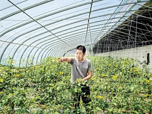 蔬菜大棚產(chǎn)業(yè)的發(fā)展還帶動了當(dāng)?shù)卮迕窬蜆I(yè)。村民劉海燕是一座黃瓜種植大棚的老員工,自從黃瓜大棚建成后,她就在此工作?!耙荒昴軖暌蝗f五六千元,還能照顧家里,挺知足。”提起在家門口工作的感受,劉海燕說。